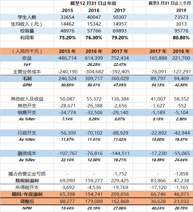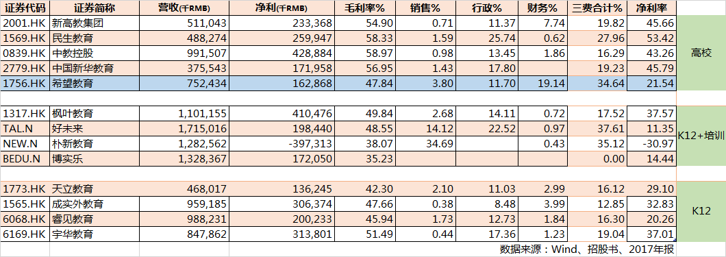翻看整理后的希望教育财报,2016和2017保持了24%左右的增长,毛利率此前为50%,到了2017年下滑至47.85%,问题不大。