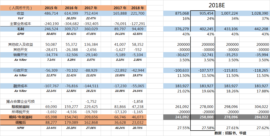 根据招股书各学校的收入增长,同时对比校舍利用率和过往的人数增长情况,考虑到今年两所学校有提费的情况,以及信息学院并表后预计全年带来1.25亿的营收增加,测算在2018年,希望教育营收有望达到落在8.75亿元~10.2亿元之间。(学生人数、学费、利用率见前文图片)