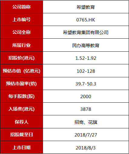希望教育在香港将于7月24日起招股,最高集资32亿港元。