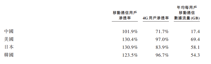 相较于全球主要移动通信市场,中国市场的移动通信用户渗透率及数据流量消费仍有增长空间。