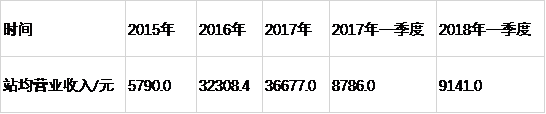 按照站均营业收入来看,截至2015年、2016年、2017年12月31日,在所有站址中的站均营业收入分别为5790.0、32308.4、36677.0。2017年、2018年一季度站均营业收入分别为8786.0、9141.0。共享模式的推广有效地提升了单位站址的收入能力。