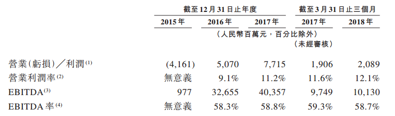 营业利润由2017年第一季度的19.06亿增加至2018年第一季度的20.89亿,同比增长9.6%,而EBITDA同期由97.49亿增加至101.30亿,同比增长3.9%,主要原因是租户数的增加及由于共享带来的站均租户数的进一步提升。站均租户数由2017年第一季度的1.40增长至2018年第一季度的1.45。