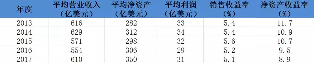 根据《财富》历年的数据整理比较,上榜中国企业的销售收益率和净资产收益率两项指标正处在下行通道。其中,净资产收益率下滑明显,从2013年的11.7%下降至2017年的8.9%。