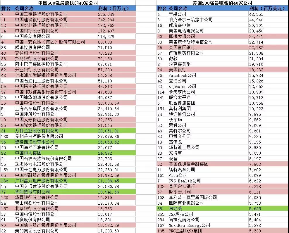 另一方面,《财富》统计的“中国500强利润率最高的40家公司”中,上榜的银行数量高达22家,平均利润率更达到恐怖的36.54%。