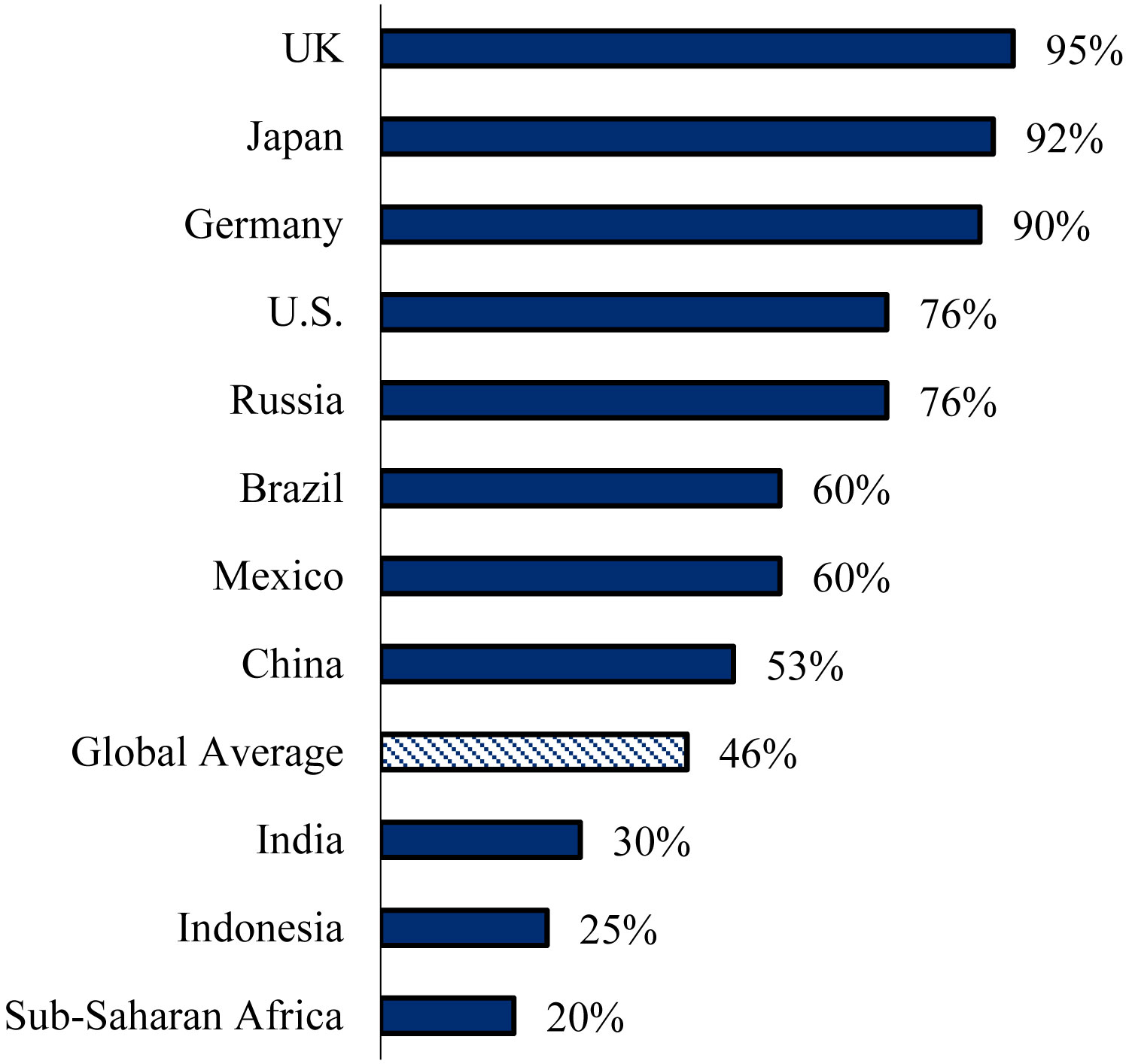 根据招股书,截止2018年3月31日,Opera的平均月活跃用户高达3.22亿人。而这些用户的主要分布范围,是在网络基础设施落后、流量成本较高的新兴互联网市场——南亚、东南亚、非洲等。从互联网普及率视角看,这些地方的普及率基本都在30%以下。