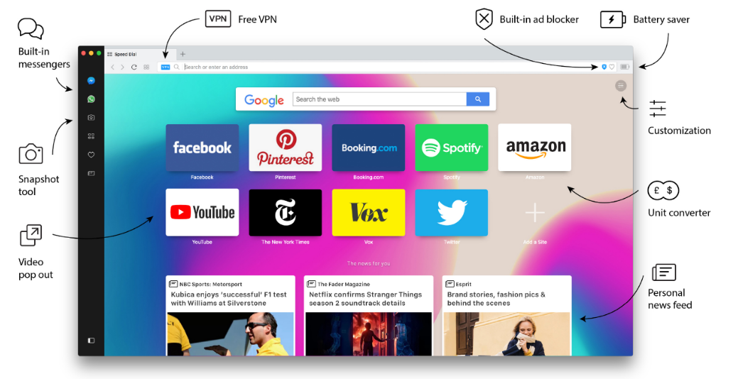 Opera,作为一家在1995年成立的老牌浏览器提供商,它一度引领了浏览器创新浪潮,比如首创标签页浏览(1998)、隐私浏览(2000)、鼠标手势(2001)、快速拨号(2007)、流量压缩(2G时代)、弹窗阻挡、重新打开最近关闭页等功能,所以被誉为被誉为“神族浏览器”。