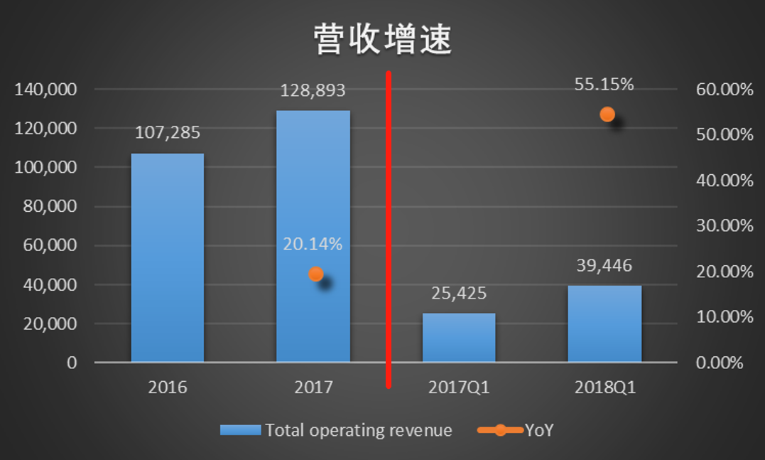 2016-2017年,公司实现营收从1.7亿美元增长到1.29亿美元,同比增速为20.14%;2018Q1,公司实现营收3900万美元,同比增速增速为55.15%,增速进一步提高。