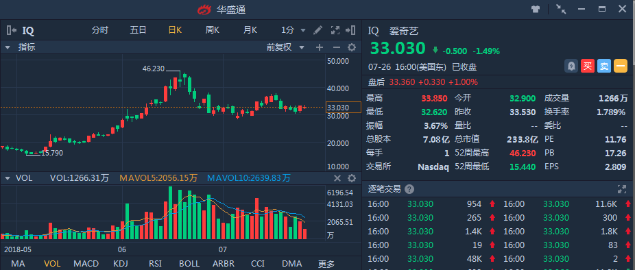 本周四,爱奇艺涨下跌1.49%,收于33.03美元。