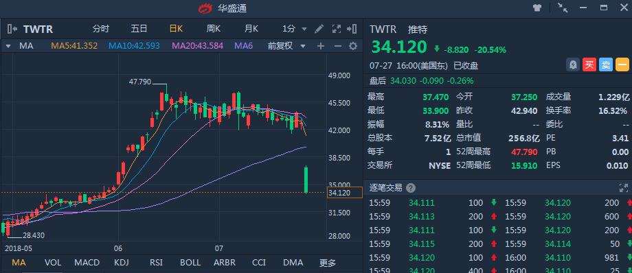 上周四社交媒体龙头Facebook盘后发布财报,因业绩不佳股价跌近19%,单日市值蒸发超过1200亿美元。周五盘前另一巨头推特发布Q2财报,平台月活不及预期,跳水行情继续上演,单日暴跌超20%,尽管月活不及预期,但日活持续两位数增长、平台环境改善、季度营收利润的持续改善也值得投资者关注。