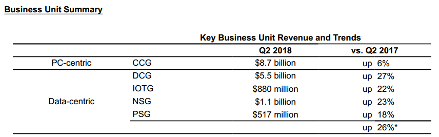 英伟达的第一大业务仍是客户计算业务(CCG),营收占总比超过50%。该业务核心产品是PC处理器,随着PC市场增长的放缓,CCG业务增长趋于平稳,Q2同比涨幅仅为6%,在所有业务中涨幅最低,近5年CCG营收和营业利润走势见下图: