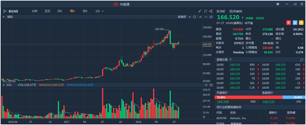 公司致力于分子靶向药物和免疫肿瘤药物研发,已于2016年在美国纳斯达克上市,凭借丰富的研发线以及与国际制药巨头的一系列战略合作,公司成为生物医药创新领域的独角兽,也成为行业中市值增速最快的公司之一,仅2年来,公司股价便从24美元上涨至最高220美元,涨幅超过9倍。公司这次来港第二次上市,有望成为今年上市新规实施后首宗在美上市的内地企业回流个案。