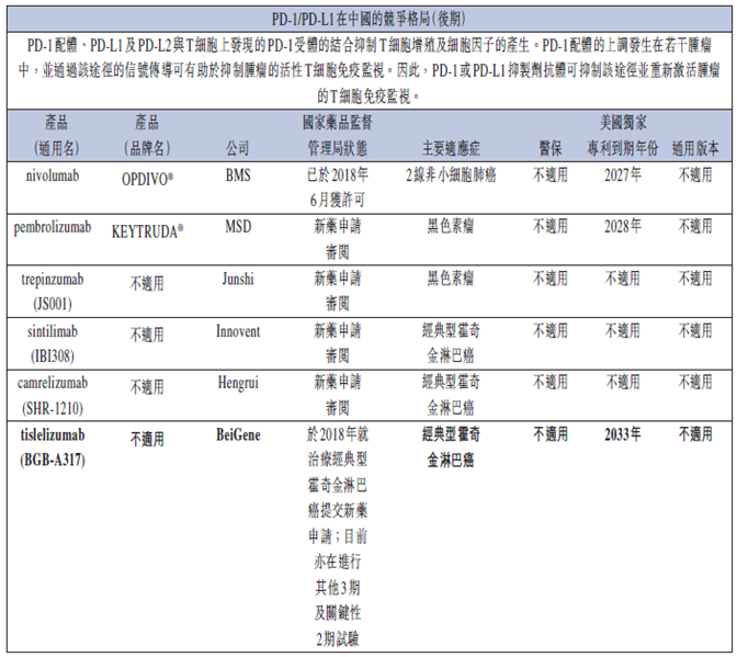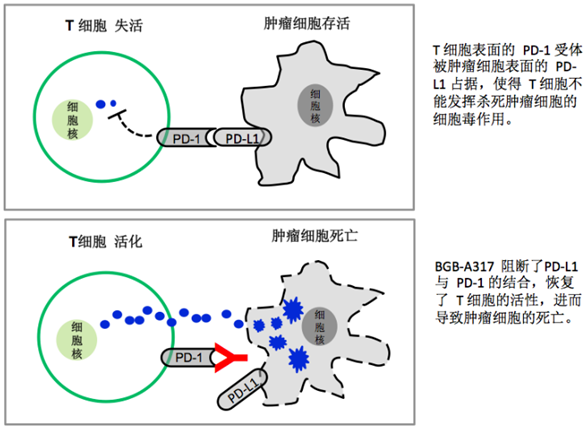 Tislelizumab,一款在研针对免疫检查点受体(PD-1)的单克隆抗体,它能够与T细胞表面阻碍免疫激活的重要受体PD-1结合,抑制PD-1,并清除癌细胞激活免疫系统的阻碍因素,从而恢复T细胞的肿瘤杀伤能力。截止2018年7月5日,临床试验已超过1500名患者,数据表明,Tislelizumab具有良好的耐受且表现出抗肿瘤活性。根据国家药品监督管理新药上市申请前会议,公司有望2018年在中国提交治疗霍奇金淋巴瘤的首次新药上市申请。