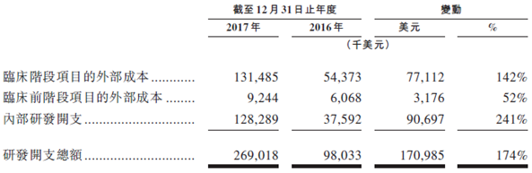 作为行业成功的关键,公司在研发投入方面巨大,2017年投入2.69亿美元为肿瘤领域中投资最大,也是中国生物制药公司中投资最多之一。