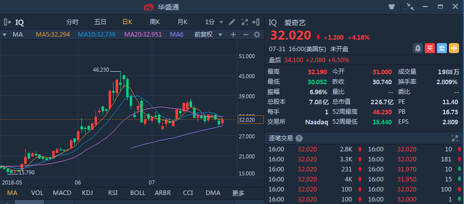 美东时间7月31日, 爱奇艺(IQ)公布2018年第二季度未经审计的财务报告,披露营收同比增长51%、总订阅会员同比增长75%等信息。受财报利好推动,股价盘后一度涨超8%。