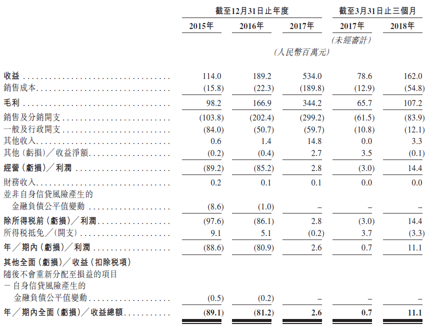 微盟业绩增长显著,总营收从2015年、2016年及2017年的总营收分别为1.14亿人民币、1.892人民币及5.34亿人民币,复合年增长率为116.4%,而毛利率同样大幅增长,复合年增长率达87.2%,且净利润自2017年以来扭亏为盈,随着业务扩张,盈利也将会不断增长。