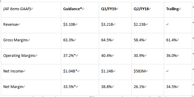 其他数据也显得更中性,GAAP及Non-GAAP毛利率预计分别为63.3%和63.5%,处于上季Q1高位及18财年Q4低位之间。