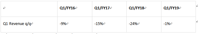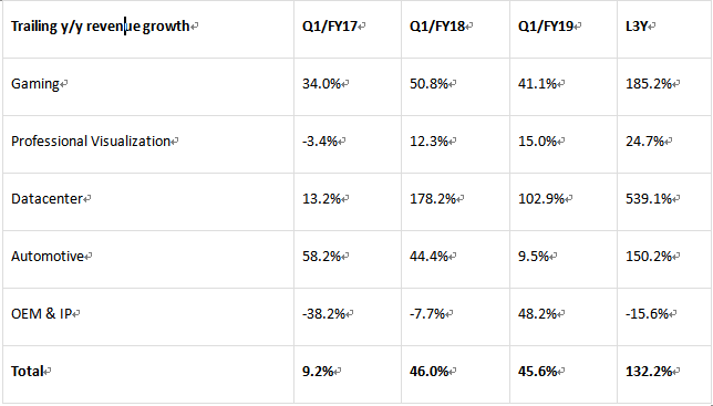 数据中心Q1营收同比增长71%至7.01亿美元,环比增长16%,各应用市场需求较强劲,比如公有云、高性能计算及AI,上季电话会,管理层表示新一代处理器架构Volta显卡获得市场广泛应用。