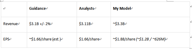 分析师较为接受该指引,雅虎财经预计营收31.1亿美元,摊薄EPS为1.66美元,相当于10亿美元的净利润。