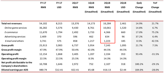 得益于《第五人格》、《楚留香》等作品,公司游戏业务毛利率保持上涨达到64%,收入同比增长6.7%,达到100.61亿元,其中手游收入占到75%;电子商务业务收入同比增长75%,达到43.66亿元。