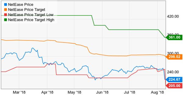 被寄予厚望的新作端游《逆水寒》市场表现一般,分析师认为公司目前缺乏重磅大作,近期已经开始下调公司目标价,目前公司最低目标价已经达到205美元。