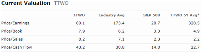 20家分析师公司已经把TTWO的目标价定为137.20美元,从下表估值对比可以看出,公司市盈率远低于行业平均水平,目前,动视暴雪市盈率TTM达到109.68倍,EA市盈率TTM也接近60倍。如果仅按照分析师目标价,以公司最新125.95美元股价,预期收益也接近9%。
