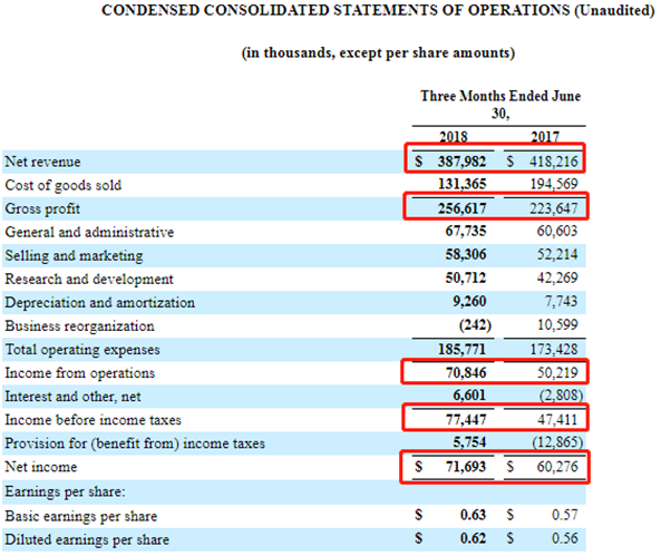 最新财报显示,公司每股盈利0.62美元,超过预期0.02美元;公司营收虽然同比下降,低于预期2863万美元,但是公司毛利同比增长14.74%,净利润同比增长18.94%。