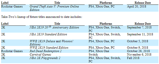 下半年除了《荒野大镖客:救赎2》,NBA2K、WWE2K新作也会从9月开始陆续发售,而且公司各大作品基本覆盖主流平台,为公司作品的推广销售打下基础。