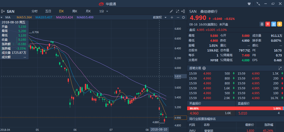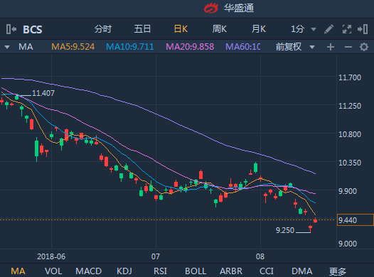 此外,欧元区其他银行的股价也出现一定程度的下行,比如德意志银行(DB)在8月10日跳空大跌4.68%,一周跌幅超过10%;而巴克莱银行(BCS)同样在8月10日下跌2.61%。