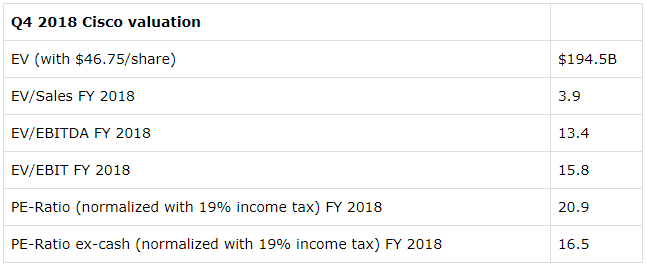 模式上,思科从硬件到向订阅及软件驱动型企业的转型备受关注,Q4软件和订阅的经常性收入虽然同比仅增长1%,但与总收入比例增至32%,其中软件占到订阅收入的56%。业务方面,除了安全业务的高增长,公司持续进行企业并购,未来对混合云的投入及5G的应用发展将提升市场对公司产品服务的需求,合理估值加业务增长,未来机会仍然可期。