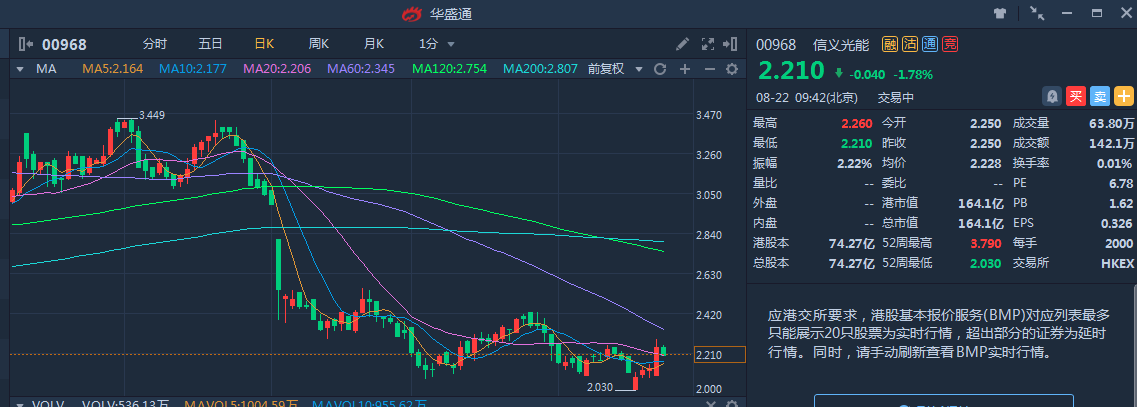 受到影响,光伏玻璃龙头制造商信义光能(0968.HK)单日重挫逾15%,其后股价走势更显疲软。
