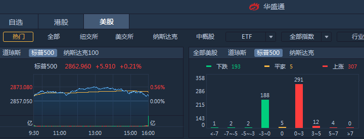 美股三大股指齐收涨,标普500指数一度刷新历史新高,追平史上最长牛市纪录。道指收涨0.26%;标普500收涨0.5%;纳指收涨0.22%。