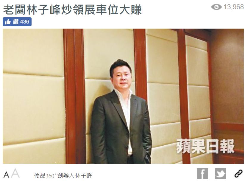 图片来源:苹果日报;林子峰是福建帮,背景神秘,现时是连锁鞋店Union及零食店优品360°老板,但大茶饭反而是炒店铺