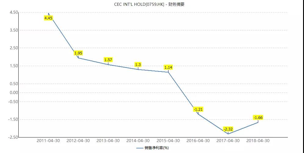 数据来源:wind;2011~2018年CEC国际销售净利率