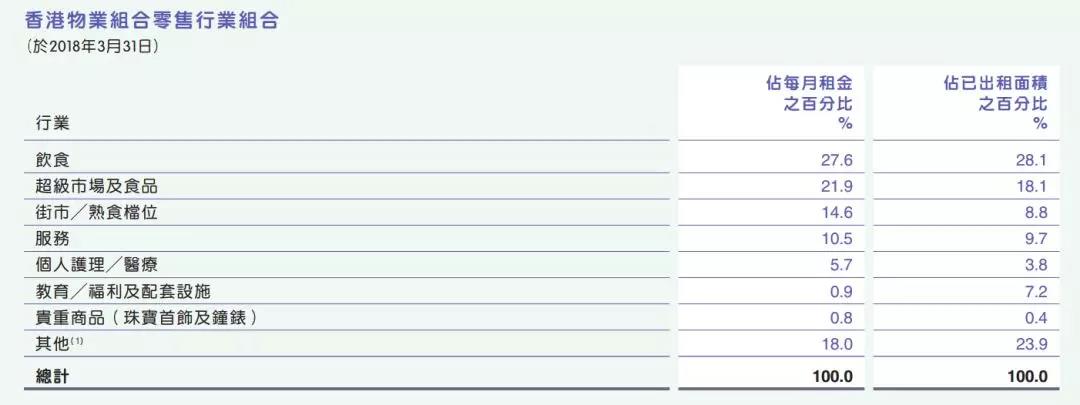 根据香港政府公布的文件显示,领展旗下物业高达15,645处。其中,香港地区的零售商铺和停车场占比高达86.7%,租户以从事饮食、超市、教育、医疗等刚需行业为主。