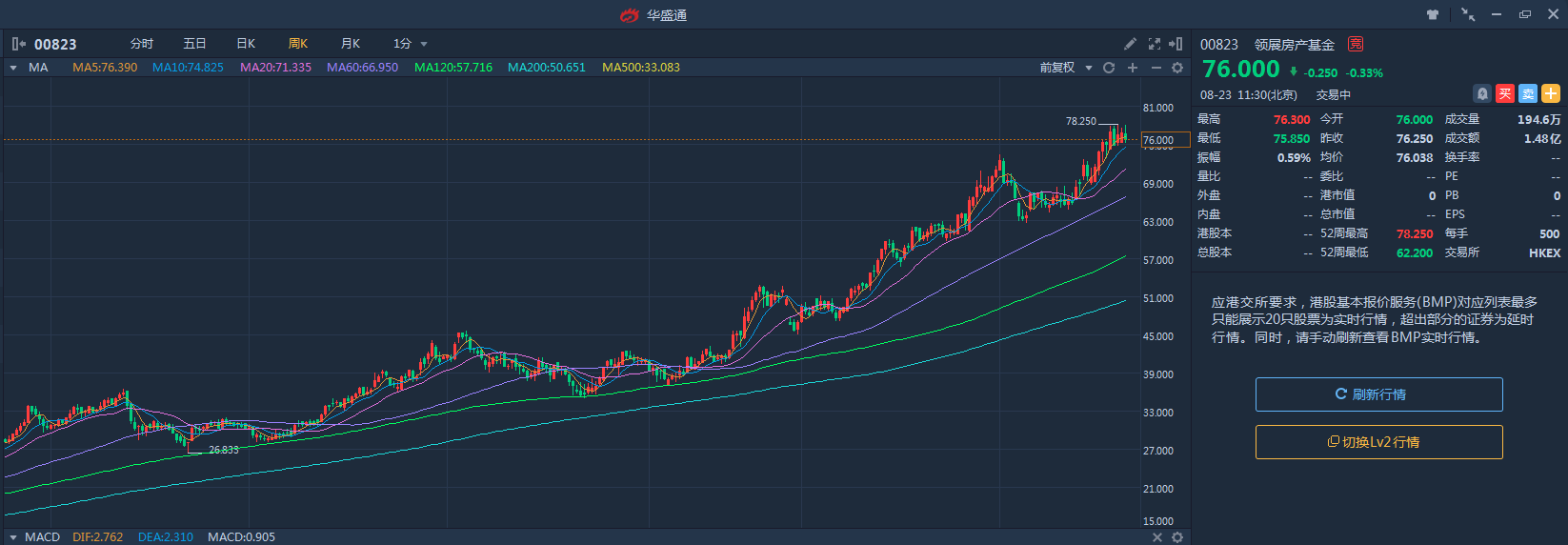 数据来源:华盛证券;领展房产基金上市至今股价走势图