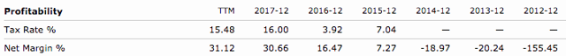 公司的净利率令人瞩目。如下图所示,在2012年至2014年,公司的净利率均为负数。但在往后几年,其净利率几乎逐年翻倍。