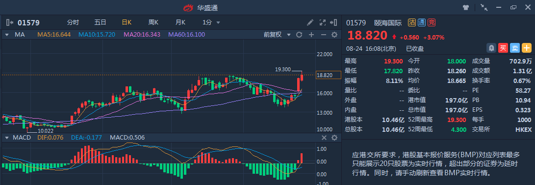集团建立广泛的销售网络,遍布全国31个省市级地区,及海外23个国家和地区。产品可送往超过6,000家大型超级市场和传统零售店舖。国内经济保持平稳发展,中餐饮消费增速较快。调味品市场同增长平稳。公司将抓着消费升级所带来的行业增长,以提升市场占有率。可于现价 18.26元附近买入,中长线可见25.30元,跌穿15.70元止蚀。