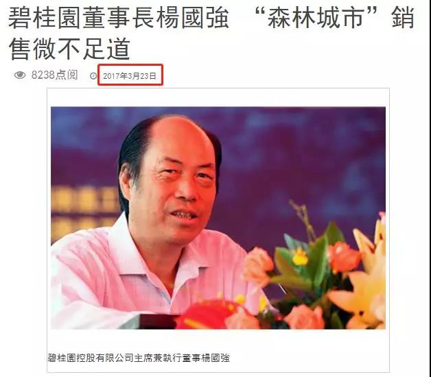 与当初铺天盖地的广告、全民营销的手法形成强烈的反差,今天的“森林城市”已被淡忘,不禁让曾寄予厚望的杨主席心灰意冷。他于2017年3月23日在香港业绩会上更一脸苦笑表示,“森林城市”项目销售贡献占公司总量“微不足道”。