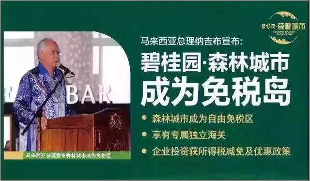 在2016年3月“森林城市”举办的全球开放盛典上,纳吉布更宣布“森林城市”成为免税区,并设置独立海关,享有部分企业所得税的减免,而且享受免除产业盈利税、印花税等其他专属优惠政策。