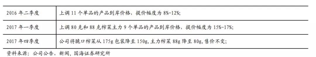 但从公司年报可以看出,涪陵榨菜的增长主要受益于提价+新品扩张。