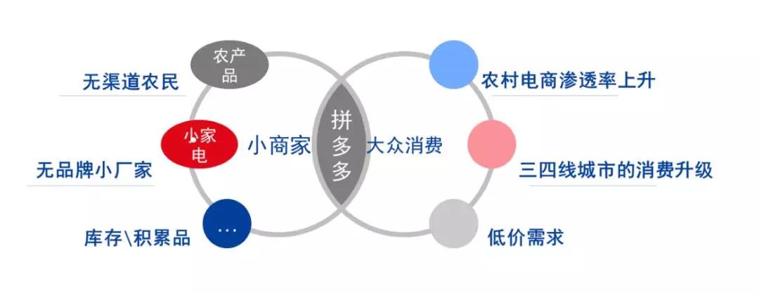 拼多多的运营模式,就是将无渠道的农产品、无品牌的小厂商、没地方处理的库存品,与消费者连接起来,搭上农村电商渗透率提升的快车和三四线城市的消费升级,满足消费者的低价要求。