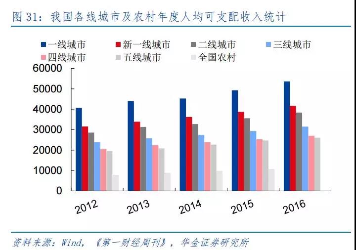 但低价需求仍然存在, 2016年,我国三四线城市人口占比达到69%,而低线城市人均收入较低,对低价商品的需求旺盛。2016年,三、四、五线城市人均收入分别占一线城市人均收入的59%、50%及49%。