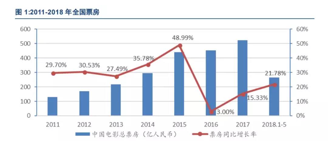 我们来看看电影票房情况,从2011年至今,我国电影行业处于高速发展阶段,全国电影票房收入一直表现不俗,今年也并没有爆发式增长。