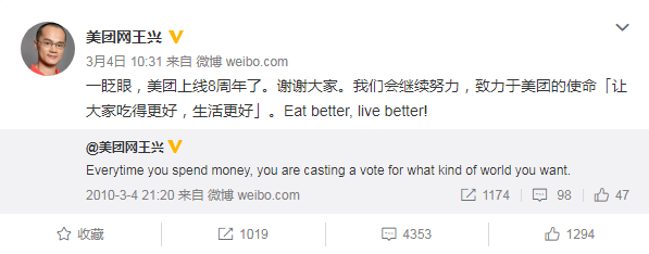 王兴说美团的使命「让大家吃得更好,生活更好」,上市自然还要:赚得更多!