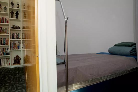 再仔细一看,办公室还另有玄机,座椅后面的木质背板上有个能打开的门,而门里面是一张不大的可供休息的床,努力工作的人就是这样子吧。“拼命工作,努力生活。”张颖曾说过。