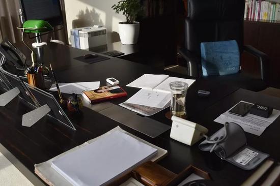柳传志的办公室采光很好,风格更古朴,每一个物件都摆放整齐。几盆植物把房间点缀得恰到好处。办公桌上的台灯、文件、纸笔等可以看出他还保留着比较传统的办公习惯。