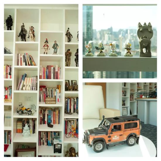 跟游戏业务相关的蓝港集团CEO王峰,他的办公室也极具个性。拍照那天,他把自己办公室里喜欢的手办等物件都整齐地摆了出来。小编不禁感慨,能把自己喜欢的事做成事业也是了不起呢。