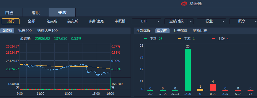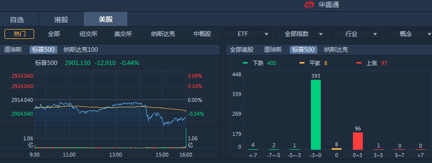 受贸易纠纷影响,周四美股集体收跌,标普500收跌0.44%,道琼斯收跌0.53%,纳指收跌0.26%。