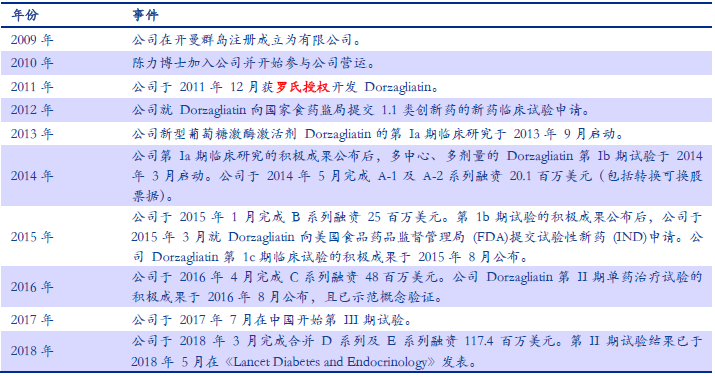 公司是一家知名糖尿病创新药物开发企业,主要致力于开发全球用于治疗2型糖尿病的全球首创创新口服药Dorzagliatin,目前产品已进入III期临床试验。