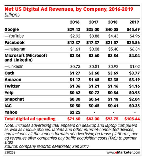上图可知,公司的市值相比其他两家规模很小,排名第二的Facebook市值已接近公司市值的20倍,而从营收来看,公司今年预计营收29.1亿美元,远低于Facebook的556.2亿美元和谷歌的1371.5亿美元。